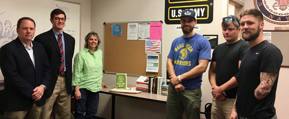 The Alpha Upsilon Phi Chapter at the University of North Georgia, Gainesville use their Chapter Service Project Grant to deliver bags filled with brand new books to the Military Resource Center Lending Library.