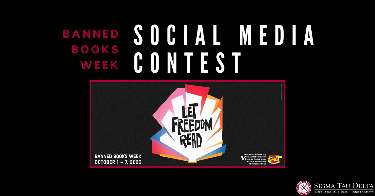 In celebration of Banned Books Week Sigma Tau Delta and National English Honor Society are teaming up to host the eighth annual Banned Books Week social media contest. For the first year ever, our brand new middle school program, English Language Arts Honor Society, will also be participating. To contribute you must tag us in a post on any of the following social media accounts: