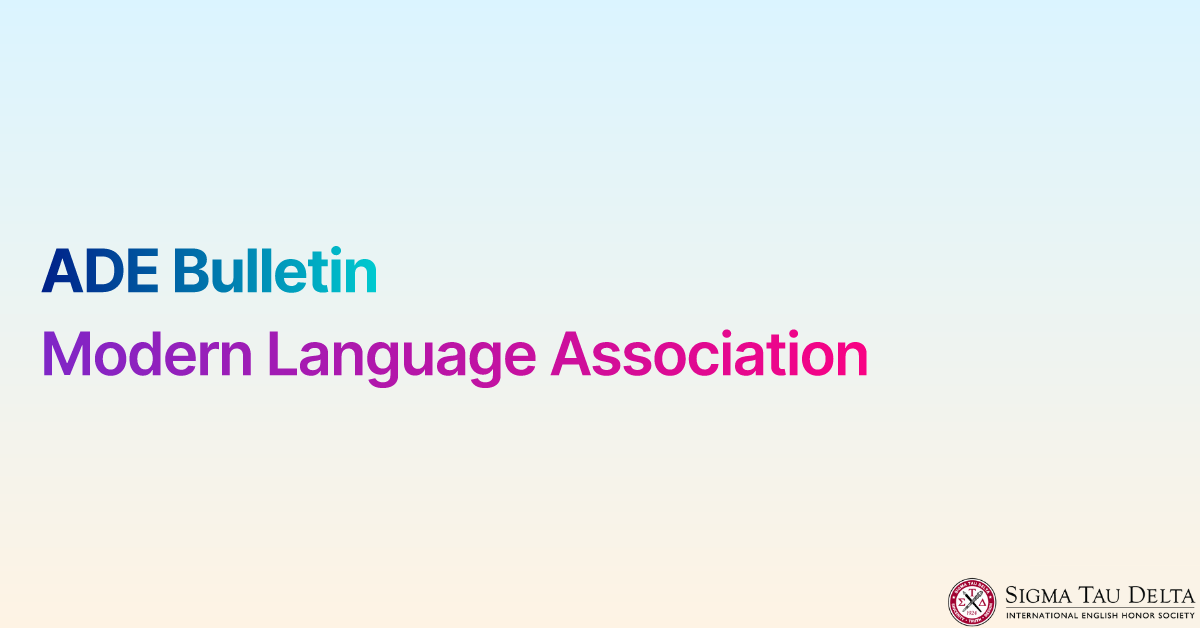 The ADE Bulletin is the refereed journal of the Association of Departments of English, published annually by the Modern Language Association. Since 1964, the ADE Bulletin has published articles, reports, and reviews dealing with professional, pedagogical, curricular, and departmental issues in the discipline of English and related fields. The primary audience of the ADE Bulletin is English educators, scholars, and administrators in postsecondary institutions.