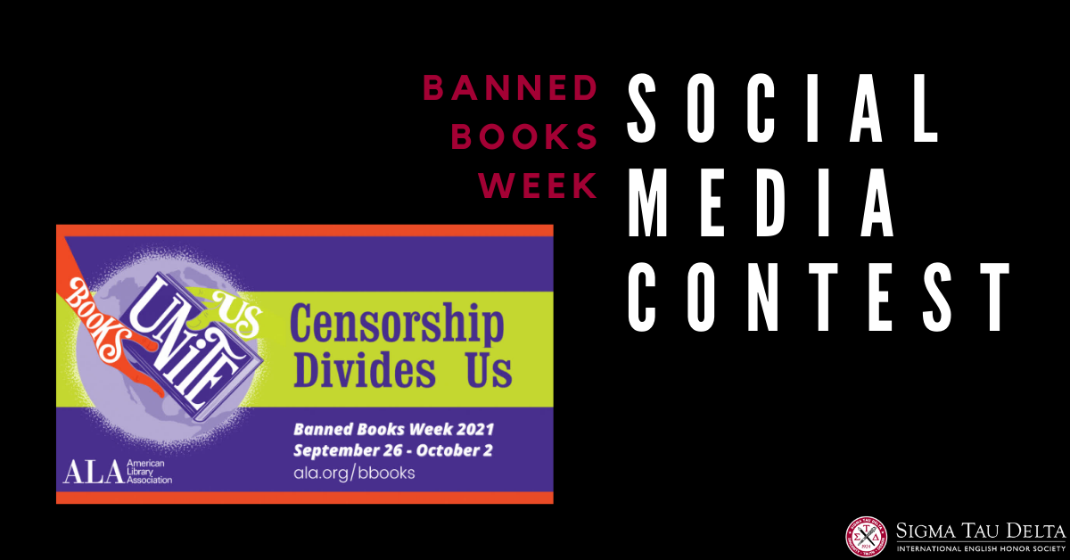 In celebration of Banned Books Week Sigma Tau Delta and National English Honor Society are teaming up to host the sixth annual Banned Books Week social media contest. To participate you must tag us in a post on any of the following social media accounts: