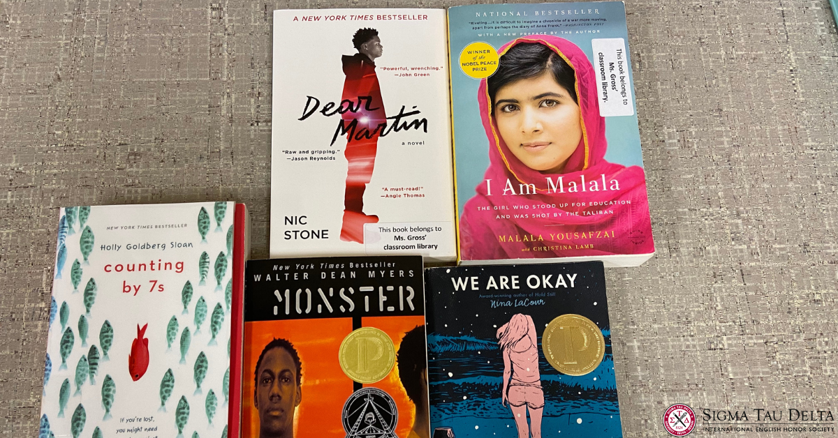 I was honored to receive a Classroom Library Grant from Sigma Tau Delta to purchase books for my classroom library. After receiving the grant, I researched diverse young adult books that feature characters with a variety of ethnicities, abilities, and gender identities. Diverse stories are essential because all students deserve to see themselves represented in the books they read.