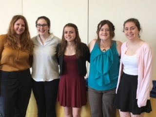 Alpha Sigma Theta Chapter Executive Board (left to right): Lyndsi Petitti, Sarah DeMatteis, Elizabeth Rourk, Alyssa Dearborn, and Anna Kroon.