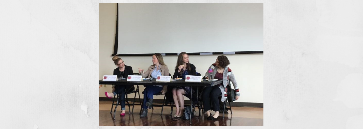 When we received grant funding from Sigma Tau Delta to hold our event, we immediately started contacting panelists in order to have a diverse turnout. In the end, our four distinguished panelists were University alumni Christina Tomarelli, a Project Manager of Global Technology at NASDAQ; Katie Edwards, a Content Marketing Specialist at WorkStride; Dr. Jenna Sheffield, the Assistant Dean of the College of Arts and Sciences and Coordinator of Writing Across the Curriculum here at the University of New Haven; and finally, British Literature and Theology Teacher Christina Ramos. All four of these individuals gave diverse educational and career backgrounds, and offered advice to the attending students, which attracted English majors as well as other majors.