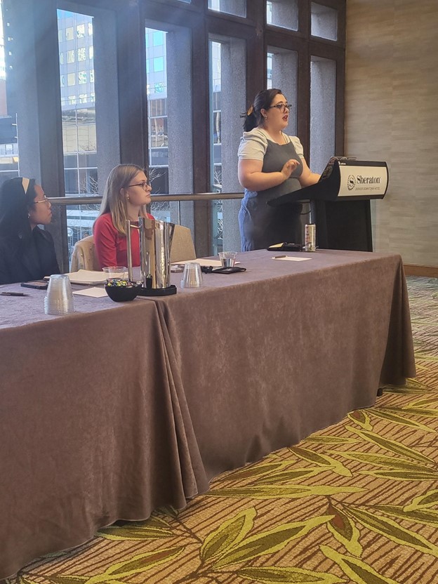 Rachel presenting her short story, “A Place Just Beyond,” at the 2023 Sigma Tau Delta Convention in Denver, CO.