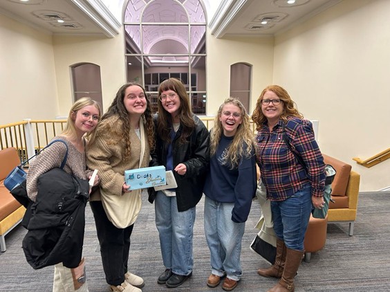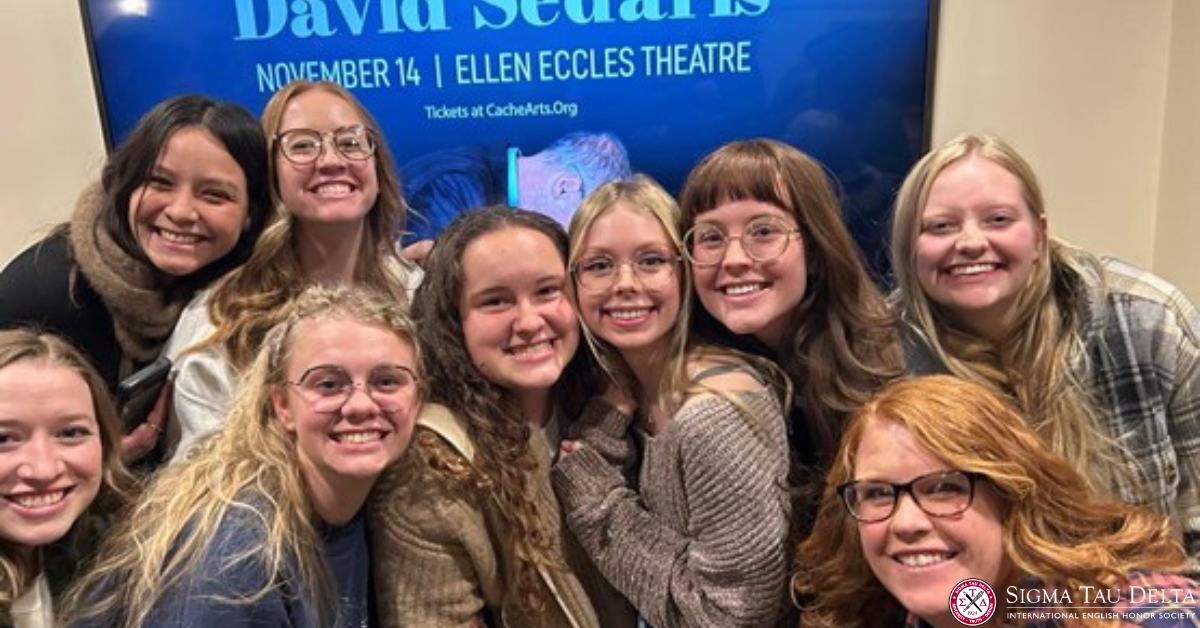 Four members of the Alpha Chi Lambda Chapter at Utah State University Statewide campuses met up with the Rho Tau Chapter at Utah State University in Logan to attend a reading by David Sedaris at the Ellen Eccles Theater in Logan, UT, on November 14, 2024. Alpha Chi Lambda Chapter Advisor Dr. Michaelann Nelson organized the event with assistance from Dr. Christine Cooper-Rompato, the Rho Tau Chapter Advisor. We met at a nearby restaurant, The Crepery, for dinner before the event. Because the Statewide students attend campuses in three different parts of the state, this was the first time that the Alpha Chi Lambda members met in person, so we also held our induction ceremony. It was fun to have the Logan members participate in the induction.