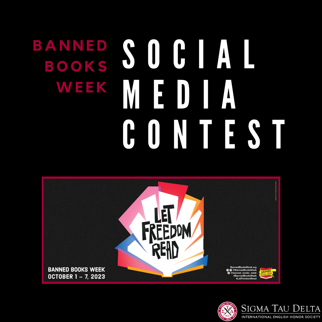 In celebration of Banned Books Week Sigma Tau Delta and National English Honor Society are teaming up to host the eighth annual Banned Books Week social media contest. For the first year ever, our brand new middle school program, English Language Arts Honor Society, will also be participating. To contribute you must tag us in a post on any of the following social media accounts: