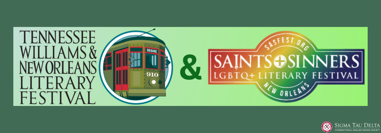The week leading up to the 2026 Convention in New Orleans, LA, will feature two festivals highlighting the literature, theatre, cuisine, and music of the city: the 2026 Tennessee Williams & New Orleans Literary Festival (March 25 – 29, 2026) and Saints + Sinners LGBTQ+ Literary Festival (March 27 – 29, 2026). Sigma Tau Delta encourages 2026 Convention attendees to consider arriving a couple of days early to experience these exceptional literary festivals. Additionally, submissions are now open for six writing contests connected to these two festivals. Submissions are due October 15. All submissions and questions must be directed to the Tennessee Williams & New Orleans Literary Festival and the Saints + Sinners LGBTQ+ Literary Festival. English Honor Societies is not affiliated with these contests in any way and cannot assist with submissions.