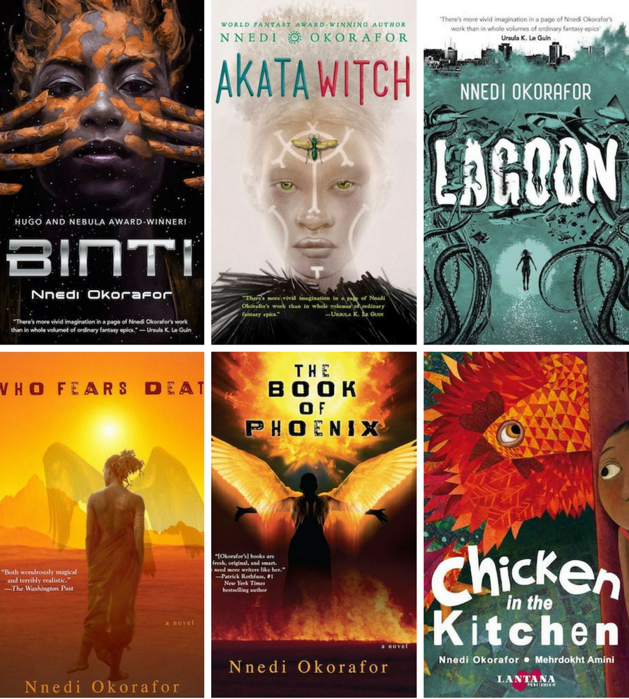 When I added all these criteria together, one name kept coming up: Nnedi Okorafor (Neh-dee Oh-core-ra-for). Okorafor has published over a dozen novels and shows no indication of slowing down: the Binti and Akata series for young adults; two other stand-alone novels for adults, Lagoon and Who Fears Death; a prequel to Who Fears Death called The Book of Phoenix; the charming children’s book Chicken in the Kitchen. In addition, she has collaborated on the Marvel series Black Panther, published a significant amount of short fiction in Clarkesworld and other Sci-Fi magazines, and is a full-professor (with a PhD in creative writing) at SUNY, Buffalo. And I am certain that I have missed something from her publications. She writes for adults, young adults, and children, and teaches others how to do so. She speaks frequently about magical futurism, about the complexity of African diaspora identity, about Afro-futurism, and about the importance of reading. Her work has been celebrated with Hugo and Nebula awards and with the Wole Soyinka prize. Given her numerous publications it’s impossible to list all the honors that have been showered upon her work.