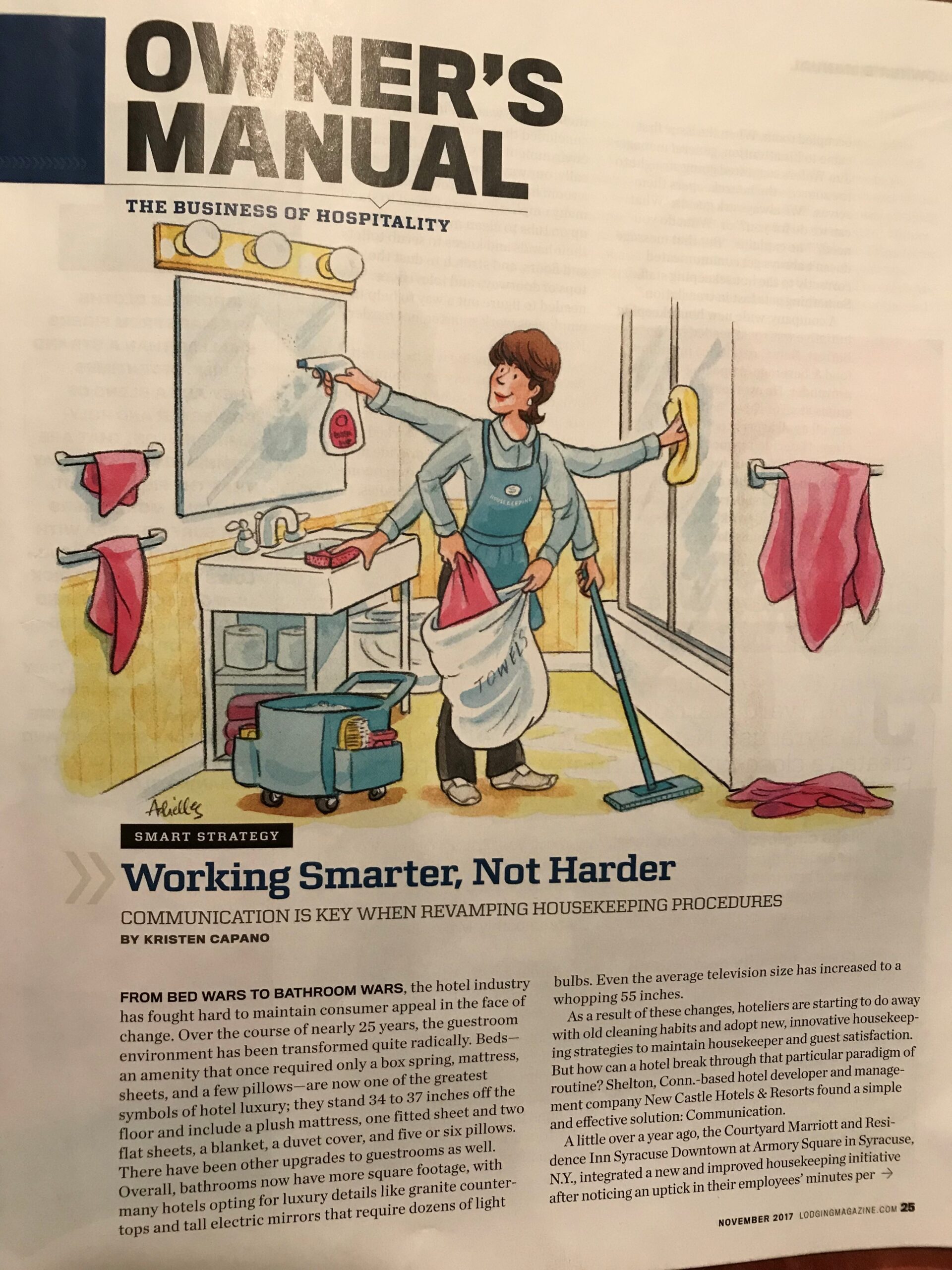 I was assigned to write articles both for online and print publications regarding up-and-coming events in the hotel industry, including renovations, technology, staff, event planning, and other hotel services. To gather information, I often interviewed prominent figures in the field, such as big-name hotel general managers and owners, architects, and company founders. I also received the opportunity to contribute to OWNER, a publication also owned by McNeill that specifically caters to international members of the InterContinental Hotel Group Owners Association (IHGOA). Once I became familiar with the specific jargon and writing style that these magazines adopted, I felt confident enough to propose a few article pitches of my own, which were accepted and published. By the end of my four months at McNeill, I had become a confident, thorough writer with a thick portfolio and knowledge in the fields of journalism and hospitality. My first articles were published in the magazine’s November issue, and seeing my name and all of my hard work in print never gets old.