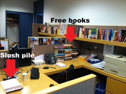 And there’s never a dull moment around here. I’m constantly reading manuscripts of varying genres: memoir, women’s commercial fiction, thrillers, mysteries, nonfiction, historical fiction, adventure, literary fiction—basically, you never really know what the next submission will be. I’ve also been put in charge of the “slush pile” (a whole bunch of unsolicited manuscripts) that I read and respond to. Reading in the office, however, is something that seems unique to an intern.