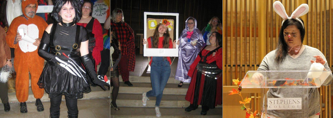 Nothing screams “Happy Halloween!” at Stephens College like Sigma Tau Delta’s annual Spook-a-thon event. Members of the Alpha Epsilon Eta Chapter embrace the holiday with a literary flair, attracting participation from faculty, students, and the college’s president. From spooky readings to the costume contest, this night of ‘terror-ific’ fun does more than celebrate the holiday. It raises the essential funds for members to attend the Sigma Tau Delta International Convention held each spring, among other things.