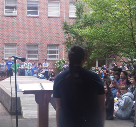 On April 23, Louisiana Tech University’s Rho Gamma Chapter of Sigma Tau Delta gathered at the Shakespeare garden in the Liberal Arts building for our biggest event of the year: the ninth annual birthday festival to celebrate the life and works of the Bard. Faculty members from the English, Theater, and History departments took the stage to commemorate William Shakespeare’s 451st birthday with presentations of the author’s many literary creations. Students read a selection of Shakespeare’s sonnets aloud throughout the day in English, French, and even Elvish.