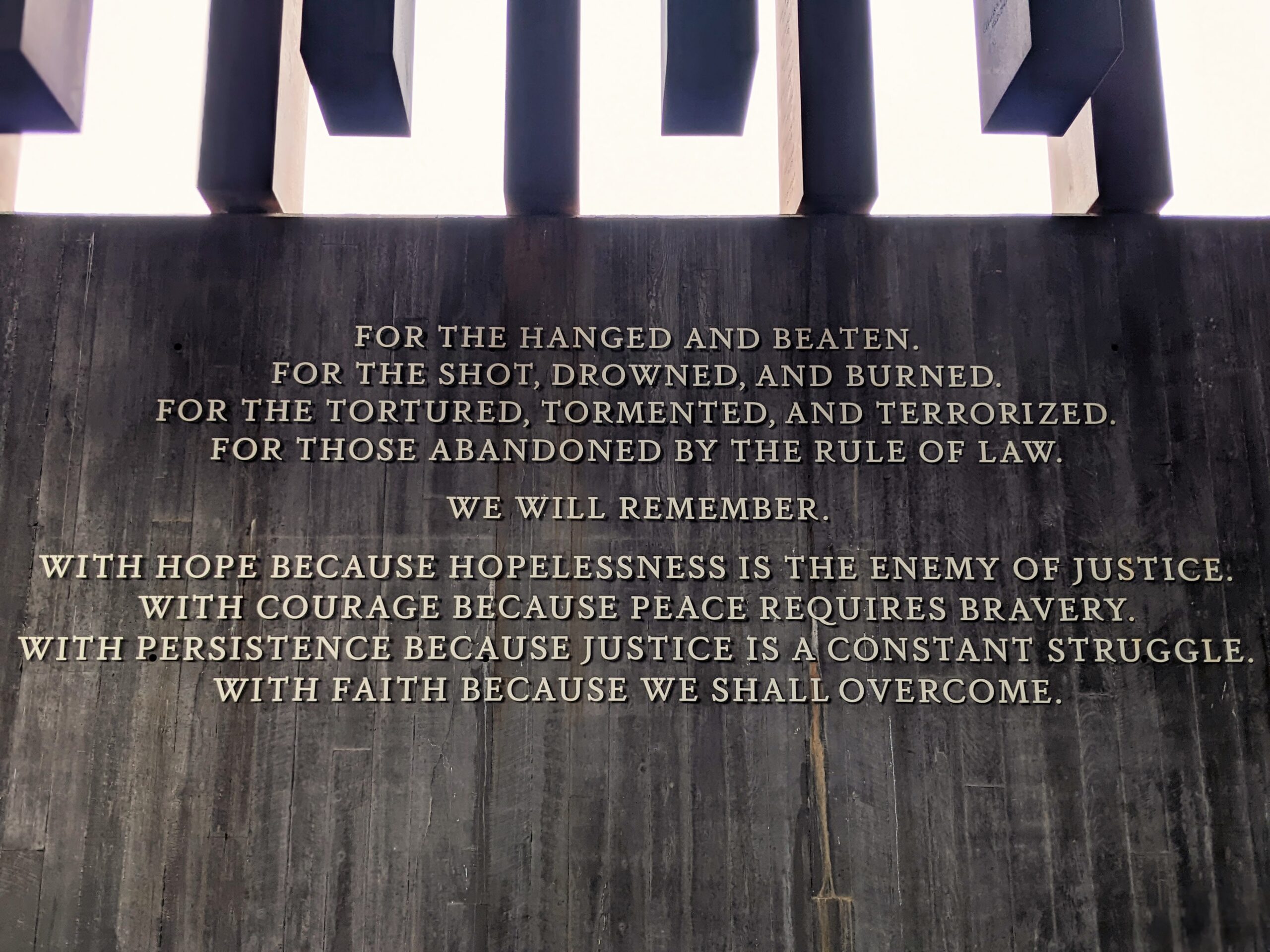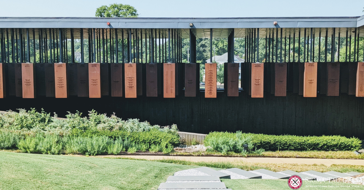 Visiting the National Memorial for Peace and Justice in Montgomery, AL, was something I’d wanted to do since I first heard about it in 2018 but living in Kansas and not having much in the way of disposable funds made it something I had to throw on the back-burner for a while. It wasn’t until I went back to school to pursue my English/Creative Writing degree at Washburn University in Topeka, KS, and got invited to Sigma Tau Delta that I was able to move the dream of visiting Montgomery to the front-burner. Thanks to being a recipient of the Lambda Iota Tau (LIT) Research Grant, I visited the Memorial in June of 2022 and really came away a changed person and writer by the end of my week-long trip.
